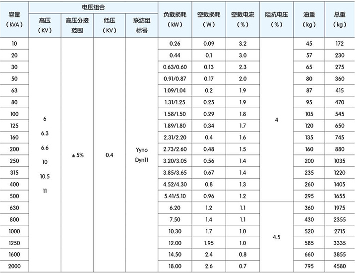 S9-M型6~10KV油浸式配電變壓器技術參數